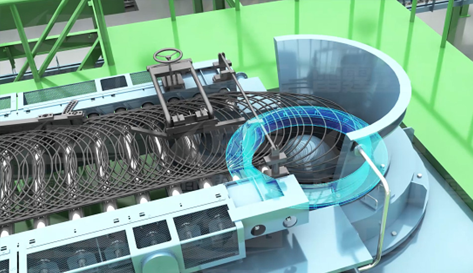 • 型式:混式鏈傳動輸送機,散卷形式將線材運輸到集卷筒。用標準冷卻和延遲冷卻模式生產出有預期冶金性能和機械特性的線材。標準冷卻模式:運輸線以快速運行,保溫罩子打開,并采用強制風冷;